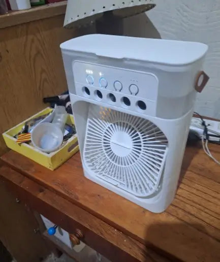 FROZTIA™ Ventilador Anti-Calor Inteligente (Eliminalo en minutos) – 3 en 1 Aire Frío, Humedad y Luz Ambiental