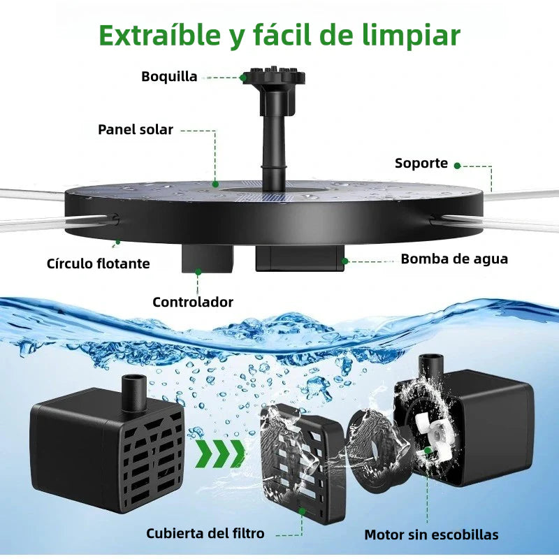 - Uso ideal: jardines, terrazas, estanques, baños de pájaros